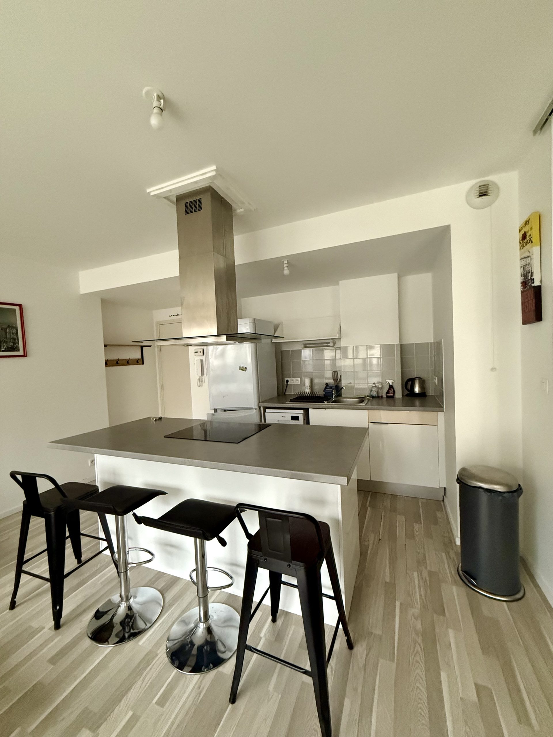 T2 de 46m2 loué meublé, composé d’un séjour avec cuisine équipée ouverte, donnant sur balcon, une chambre, une salle de bains, un WC séparé.
