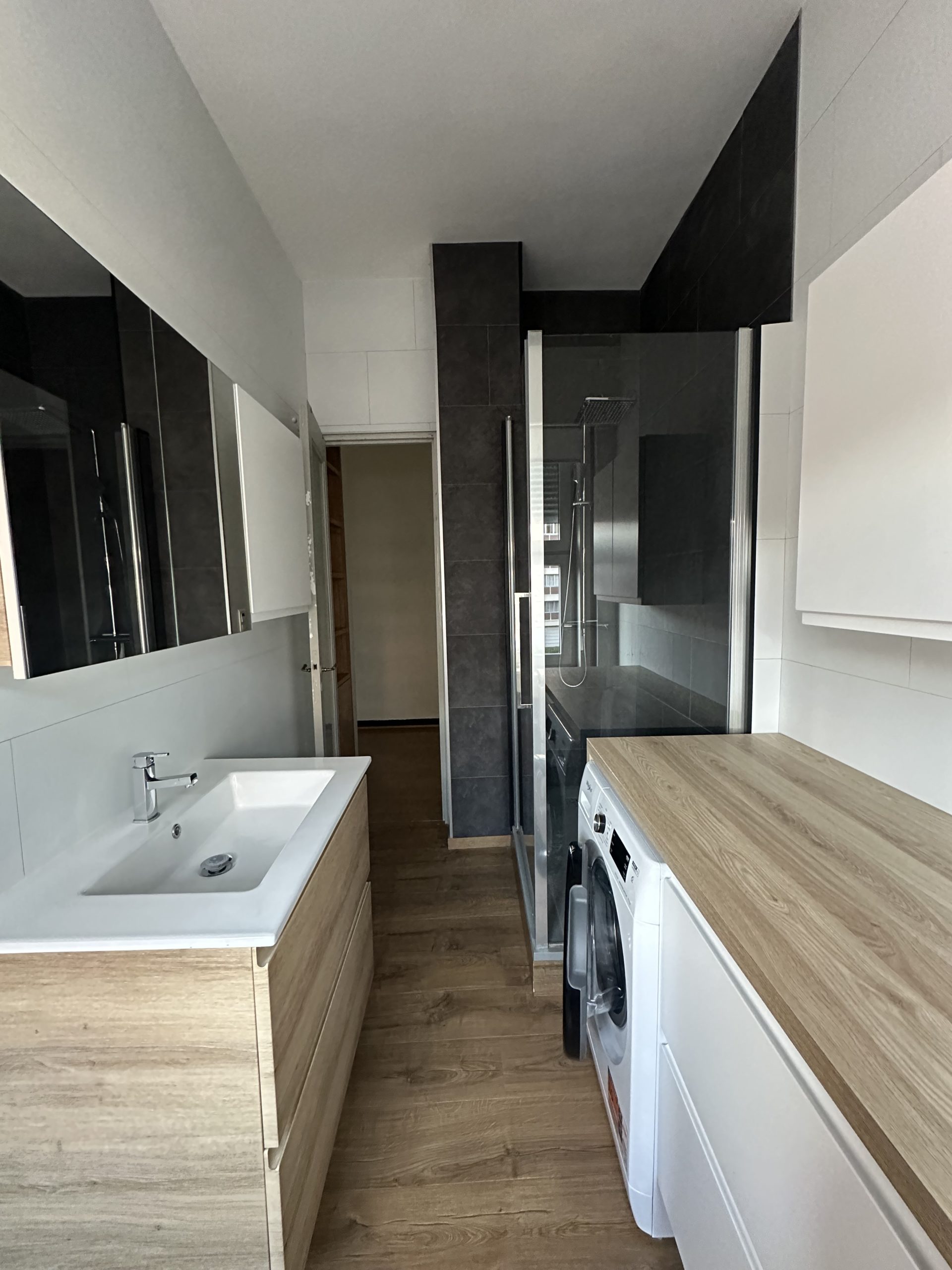 T3 de 74m2 composé d’un salon séjour avec cuisine équipée ouverte, 2 chambres, une salle de douche, un WC